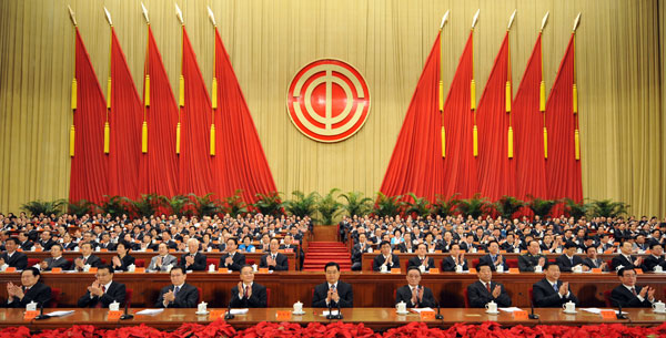 |  10月17日,中国工会第十五次全国代表大会在北京人民大会堂隆重开幕。胡锦涛、吴邦国、温家宝、贾庆林、李长春、习近平、李克强、贺国强、周永康等在主席台就座,祝贺大会召开。 新华社记者 刘建生 摄 中国工会第十五次全国代表大会在京开幕 胡锦涛吴邦国温家宝贾庆林李长春习近平李克强贺国强周永康等到会祝贺 习近平代表党中央致祝词 金秋时节,承载着全国亿万职工的殷切期待,肩负着在新的历史起点上开创工会工作新局面的光荣使命,来自全国各地、各条战线的1700多名工会十五大代表相聚北京。17日上午,中国工会第十五次全国代表大会在人民大会堂隆重开幕。胡锦涛、吴邦国、温家宝、贾庆林、李长春、习近平、李克强、贺国强、周永康等党和国家领导人到会祝贺。  17日,雄伟的人民大会堂洋溢着庄重热烈的气氛。上午9时,大会开幕。在热烈的掌声中,中共中央政治局常委、中央书记处书记、国家副主席习近平代表党中央发表了题为《在夺取全面建设小康社会新胜利中充分发挥工人阶级主力军作用》的祝词。他首先向大会的召开表示热烈祝贺,向全国各族职工和工会工作者致以亲切问候。 习近平在祝词中充分肯定了改革开放30年来我国工人阶级为发展中国特色社会主义伟大事业作出的不可磨灭的历史性贡献,高度评价了各级工会组织在动员组织职工建功立业、维护职工合法权益、提高职工整体素质、加强工会组织建设等方面取得的显著成绩。 习近平强调,党的十七大适应国内外形势的新变化、顺应各族人民过上更好生活的新期待,提出了实现全面建设小康社会奋斗目标的新要求。夺取全面建设小康社会新胜利,是新的历史起点上充分发挥工人阶级主力军作用的聚焦点,也是发挥各级工会组织优势和作用的切入点。全面建设小康社会既要切实造福工人阶级,又要始终依靠工人阶级。我国工人阶级一定要承担起历史赋予的崇高使命,积极发挥主力军作用,充分展现主人翁风采,为夺取全面建设小康社会新胜利建功立业。他希望广大职工以解放思想为先导、以改革创新为动力,奋力推进各方面体制创新,坚定信心、振奋精神,爱岗敬业、奋力拼搏,为推动科学发展、促进社会和谐贡献力量;在创新实践中全面提升整体素质,为建设创新型国家和创新型企业充分施展才华。 习近平要求各级工会组织高举中国特色社会主义伟大旗帜,以邓小平理论和“三个代表”重要思想为指导,深入贯彻落实科学发展观,始终做到与时代发展同步伐、与改革开放共命运、与党和职工群众心连心,坚定不移地走中国特色社会主义工会发展道路,切实维护好广大职工群众的合法权益,以改革创新精神进一步加强工会组织自身建设,团结动员全国广大职工为夺取全面建设小康社会新胜利而不懈奋斗。 习近平在祝词中说,各级党委和政府要坚决贯彻落实全心全意依靠工人阶级的方针,切实加强和改善对工会工作的领导,为工会事业发展创造更好环境。 中共中央政治局委员、全国人大常委会副委员长、大会主席团常务主席王兆国主持开幕式,并代表中华全国总工会第十四届执行委员会向大会作了题为《高举中国特色社会主义伟大旗帜,团结动员亿万职工为夺取全面建设小康社会新胜利而奋斗》的报告。 全国妇联党组书记、副主席、书记处第一书记黄晴宜和解放军总政治部副主任刘振起,分别代表各人民团体和解放军、武警部队向大会致贺词。 大会还以书面报告的形式向代表提交了《中国工会章程(修正案)》、《中华全国总工会第十四届执行委员会财务工作报告》、《中华全国总工会第十四届经费审查委员会工作报告》,请代表审议。 出席开幕式的领导同志还有:王刚、王岐山、回良玉、刘淇、刘云山、刘延东、李源潮、张德江、徐才厚、郭伯雄、尉健行、罗干、何勇、令计划、王沪宁、韩启德、周铁农、李建国、蒋树声、陈昌智、严隽琪、梁光烈、马凯、孟建柱、戴秉国、王胜俊、曹建明、杜青林、张榕明、钱运录、郑万通、林文漪、陈宗兴和倪志福等。 |