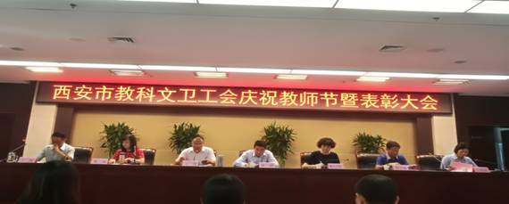 9月11日下午,西安市教科文卫工会隆重召开庆祝2018年教师节暨最美教育工作者表彰大会。省教科文卫体工会副主席陈鹏、市总工会副主席魏大宝珠、市教科文卫工会主任王勇出席大会并讲话。受表彰的“最美教育工作者”和市属基层教育单位工会主席一百余人参加会议。