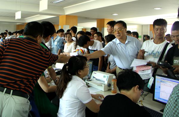 9月7日至10日,学院2015年新生报到工作开始,学院龙首校区、临潼校区和院本部分别设立迎新生接待点,校园里迎新现场繁忙有序,处处洋溢着喜庆、热烈的气氛。新生报到期间,院工会副主席同颖葵陪同党委书记安文中、院长田和平、党委副书记康敬远、党委副书记、纪委书记黄家昌、副院长邓耀斌和副院长翁谦锁亲切看望2015级新生及家长,并向参加迎新工作的教职员工和学生志愿者送去慰问。