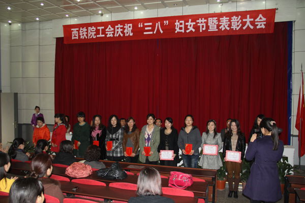 | 在万物复苏,春暖花开的季节,院工会于3月6日下午在院本部阶梯教室隆重召开了庆祝“三·八”国际劳动妇女节暨表彰大会。学院党委书记安文中、院长田和平、党委副书记纪委书记黄家昌、副院长邓耀斌、副院长翁谦锁和院工会副主席同颖葵出席大会。会议由院工会办公室主任王润霞主持。 大会表彰了在2012年度工作中取得优异成绩的6个“三八红旗集体”、52名“三八红旗手”和3名“优秀女职工工作者”。获奖先进集体和个人的代表王婷、樊润慧分别做了表态发言。 会上学院党委书记安文中代表学院党、政作了重要讲话。他首先向全院女教职工和女大学生致以节日的问候,对全体女职工在学院各方面的贡献给予了充分的肯定,同时,向全院女教职工和女大学生提出了四点希望:第一、希望全体女教职工融入中心,服务大局,在教育教学中“巾帼建功”;第二、希望全体女教职工弘扬美德,勤俭持家,撑起幸福家庭“半边天”; 第三,希望党政工各级组织关心和支持妇女工作,为妇女发挥才干提供平台;第四、希望女大学生们能“仰望星空,脚踏实地”,在努力学习专业知识的同时参与各种实践活动,增长才干。为学院的建设与发展做出应有的贡献。 表彰会在《西铁院院歌》歌声中圆满结束。 ( 院工会)